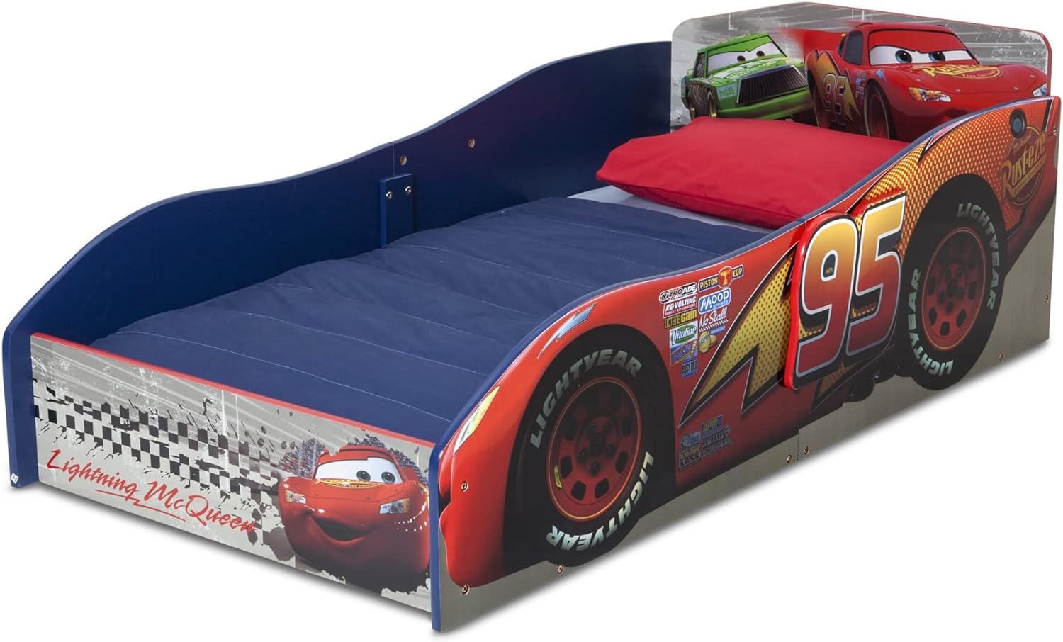 Delta Children Cars Wood Toddler Bed is JPMA certified Petal to the Metal with Lightning McQueen in this newly designed Cars Wood Toddler Bed. The toddler bed is designed to be just like Lightning Mcqueen’s own speedy race car embracing a friendly and fun way to transition your child from a crib to Toddler Bed. The Disney Pixar Cars Wood Toddler Bed also features a durable wood construction to ensure both safe sleeping and comfortability. Meets all JPMA safety standards. Some assembly required.