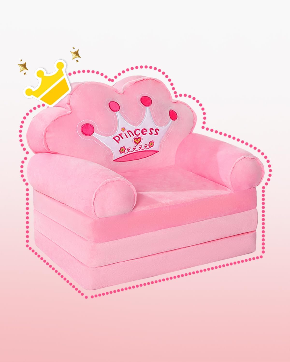 CROWN DESIGN FOR GIRLS: Adorable crown shaped toddler chair designed especially for little girls; adds a princess like touch to bedrooms and playrooms; creates a cozy personal seat for reading, resting, or play