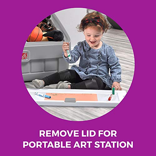 Step2 2-in-1 Toy Box & Art Lid, Kids Toy Storage Bin & Organizer, Easel & Chest in One, Made of Durable Plastic, For Toddlers 2+ Years Old, Gray