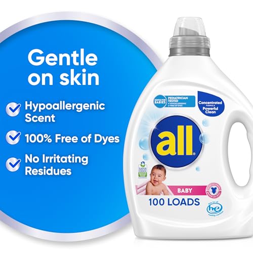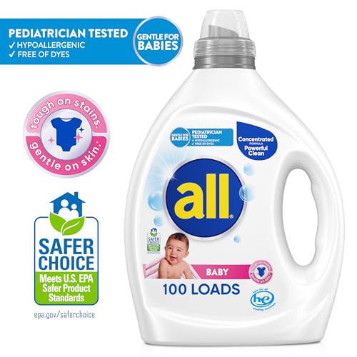 all Baby, Gentle for Baby, Liquid Laundry Detergent, Hypoallergenic for Sensitive Skin, Concentrated, 75oz, 100 Loads
