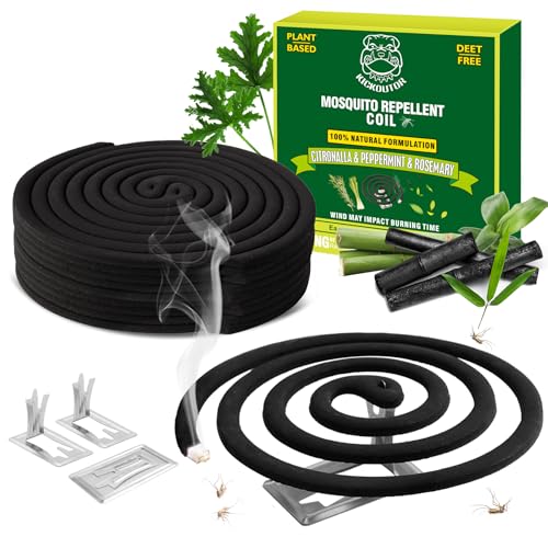 KICKOUTOR® Mosquito Repellent Coils, Each DEET Free Citronella Incense Burns for 5-7 Hours, Keep Flying Bugs Away from Outdoor Patio Camping Backyard Room (20 Coils & 4 Stands)