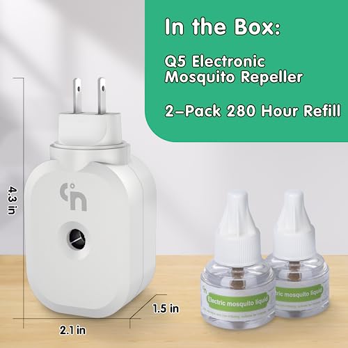 Mosquito Repeller, Electronic Mosquito Repellent Plug in Indoor Use, Includes 2-Pack 280 Hr Repellent Refills, No Candles or Flames, DEET-Free, for Home, Bedroom, Office, Kitchen (White)