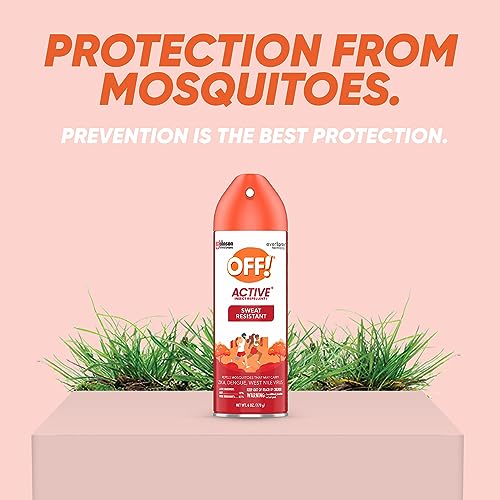 Mosquitoes are attracted to lactic acid, a chemical found in sweat, so as you and your family become active, be sure to use OFF! Active bug repellent. It provides hours of protection for your active lifestyle, so you can keep living life your way. Protects against mosquitoes that may carry the Zika, Dengue, or West Nile virus, biting flies, gnats, ticks, chiggers, and fleas. It works on skin and clothing and is perfect for running, hiking, playing, and outdoor activities. Keep out of reach of children and pets. See the label for other precautions and usage directions. Product label may vary.