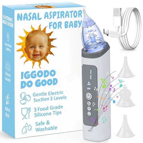Electric Nasal Aspirator for Babies – Gentle Electric Nose Suction for Baby – Adjustable Suction, Calming Music & Light – Soft Silicone Tips for Newborn and Infant Congestion Relief – USB Rechargeable