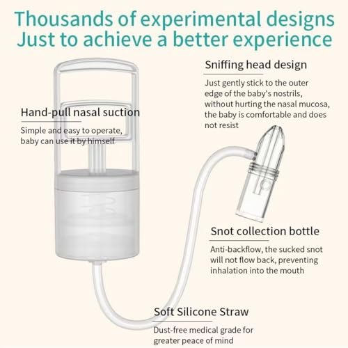 Easy to Use & Clean:This manual nose sucker is simple to operate – no batteries or electricity required. ltsdetachable design makes it easy to disassemble and clean, ensuring hygiene and preventingthe buildup of bacteria.