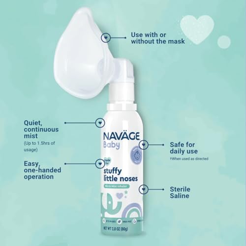 Everything You Need to Get Started: Help your baby go from stuffed up to snuggled up with a saline spray for babies that’s ready to use out of the box; The Navage baby and infant nasal spray mist comes with the micro mist saline inhaler and 1 removable face mask