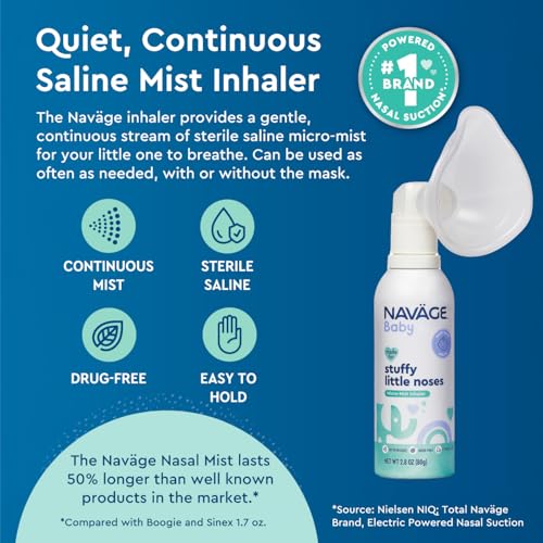 Navage Baby Micro-Mist Saline Inhaler – Saline Nasal Spray for Congestion Relief – Pediatrician Endorsed Baby Nasal Spray w/Mask & Quiet, Continuous Mist (2.8 oz)