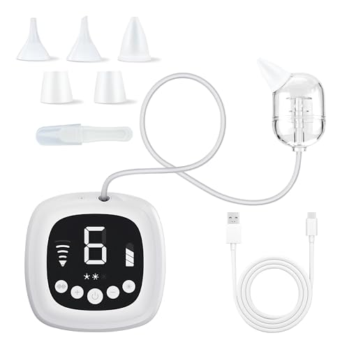[Soothing Functions]: Features a lullaby and soothing night light to create a calming environment during nasal aspiration for your baby. 3 brightness night light and 4 levels of lullaby volume adjustment.