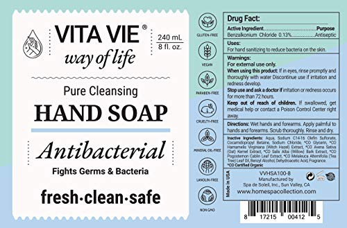 EFFECTIVE HAND SOAP: The Vita Vie cleansing hand soap is a nourishing formula that works to remove germs and harmful bacteria from hands, without overly drying the skin.