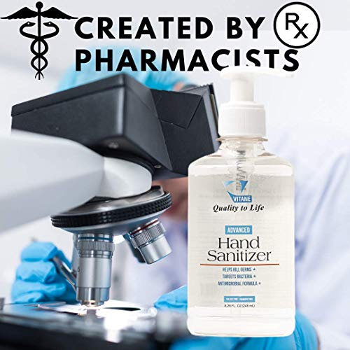 Vitane Premium Hand Sanitizer Gel with Pump 8.28 fl oz (6-Pack) – Quick-drying 70% Alcohol – Kills 99.99% of Germs, Refreshing Gel By Doctors Of Pharmacy