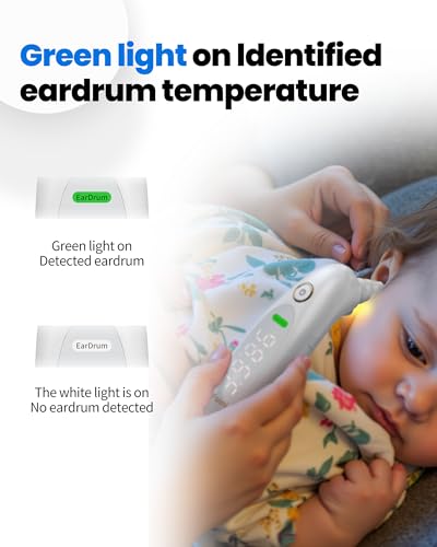 FEVER WARNING & NIGHT LIGHT: When a fever (100°F or higher) is detected, it instantly alerts with three beeps and visual red alerts—the best pediatric thermometers for quick identification. The built-in night light lets you measure the temperature smoothly while your little one sleeps, no need to switch on bright lights that might wake them