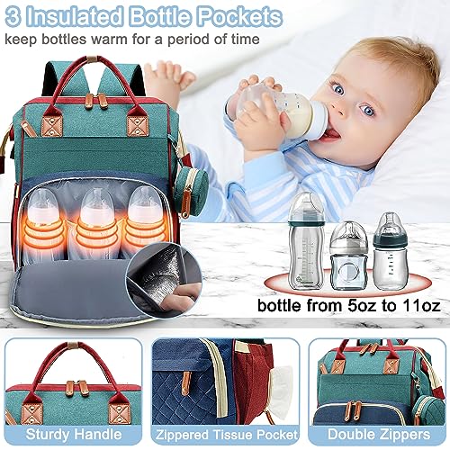 Diaper Bag Backpack Baby Bag, Baby Girl Boy Diaper Bag for Dad Mom with Pad, 16 Pockets, Pacifier Case, Large Diaper Bags Unisex for Travel (Colorful)