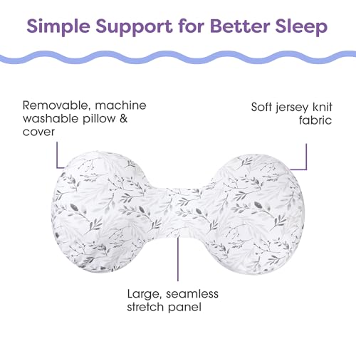 Boppy Side Sleeper Pregnancy Pillow, Gray Falling Leaves, Portable, Supportive Pregnancy Pillows for Sleeping on Your Side, Stay-Put Design with Stretchy Center Panel That Grows with Your Bump