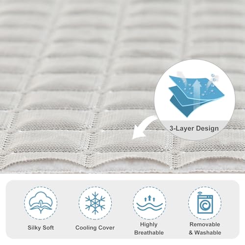 EASY TO CLEAN AND DURABLE: The cooling ice silk cover is removable and machine-washable, made from fade-resistant fabric that stays fresh after washing.