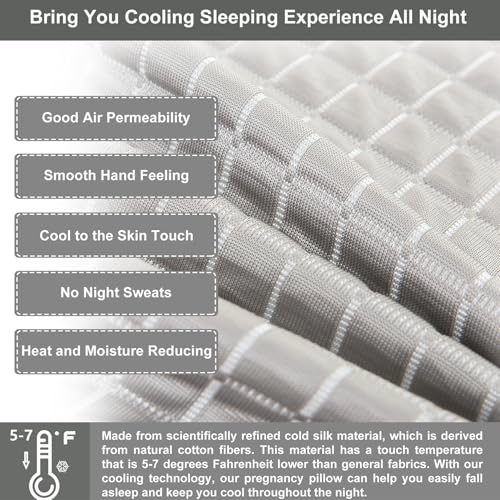 Cooling Pregnancy Pillow, U-Shaped Body Support Maternity Pillow, Memory Foam Filling, Washable & Removable Ice Silk Cover(Cool-Grey, 54 Inch)