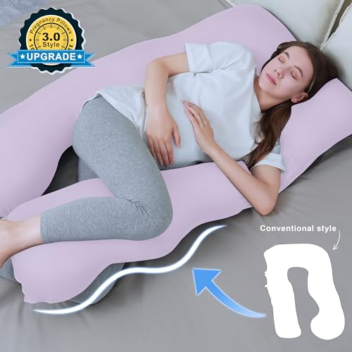 Pregnancy Pillows for Sleeping – Removable Cooling Cover J+i Shaped Full Body Pillow – Support for Back, Legs, Belly, HIPS – 57 Inch Maternity Pillow for Women – Purple