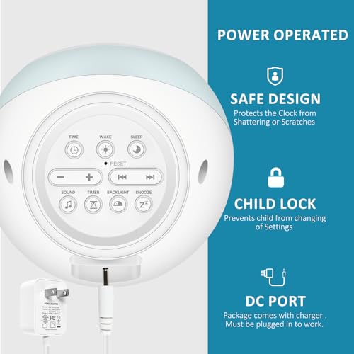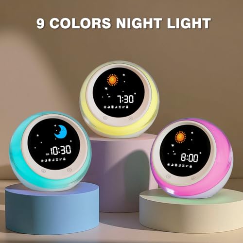【 Sleep Timer 】 Timer with a countdown time of 15/30/60/90/120 minutes. Help kids manage time by timing nap, games. features snooze function with a 9-minute snooze time, child lock,and backlight changeable.