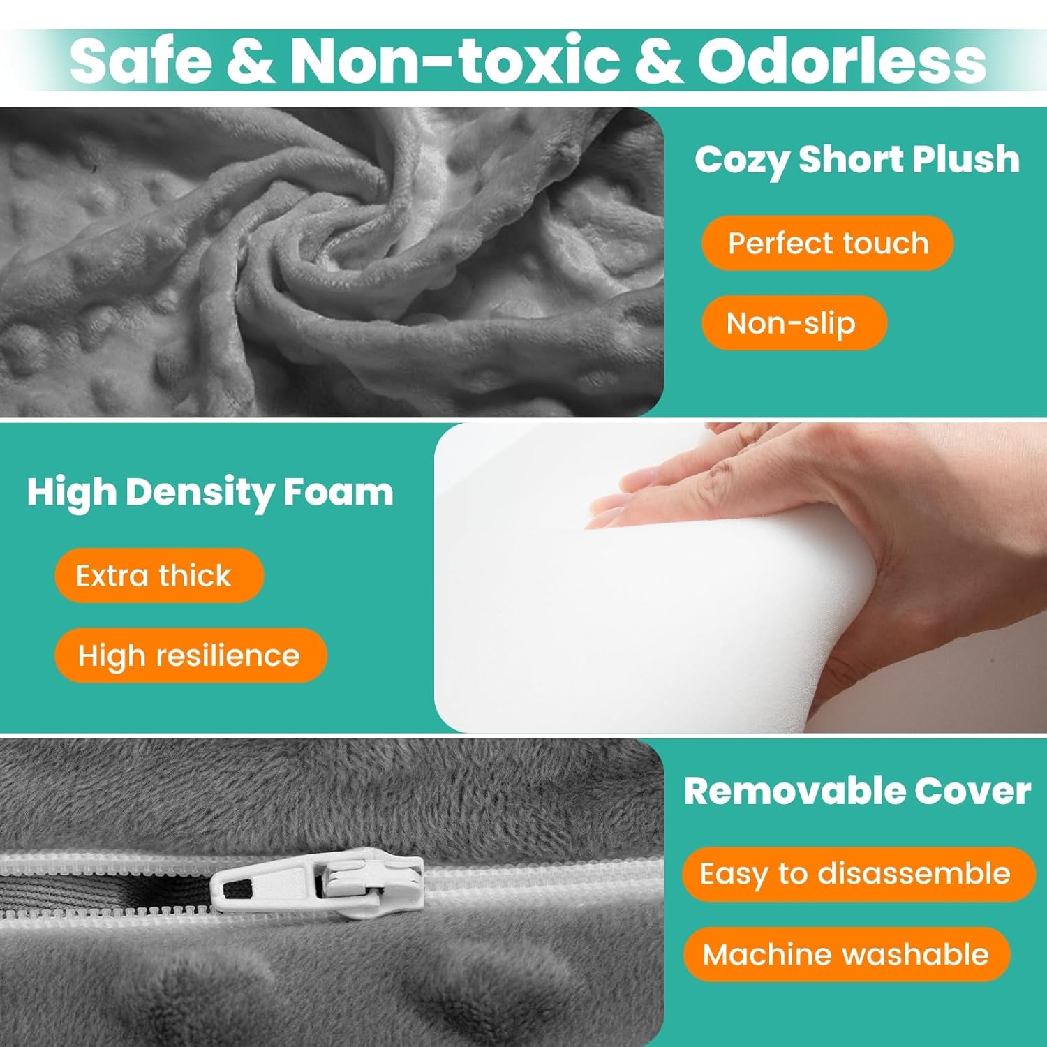 【Cozy Short Plush Cover】The fabric cover is so soft for baby’s skin and it’s pretty simple to take off and clean,you can use machine for washable.Tips:The foam padded could not been washed