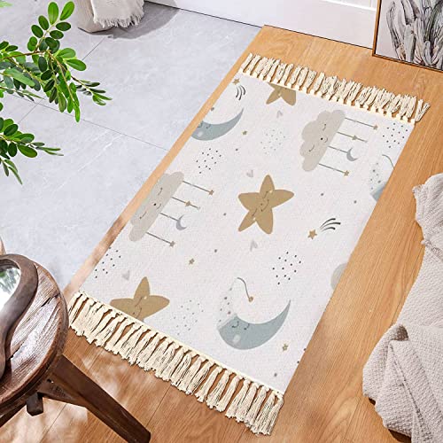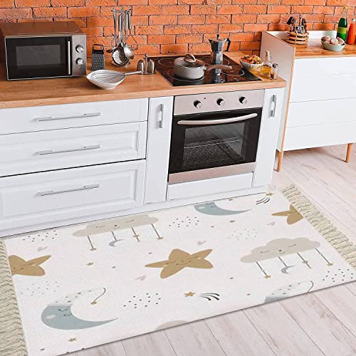 Boho Kid Bedroom Playroom Nursery Area Rugs Cute heavenly seamless Cartoon baby print a sleeping moon star cloud Tassels Carpet Patio Hallway Runner Mat Pad Home Decor Living Room Indoor Outdoor